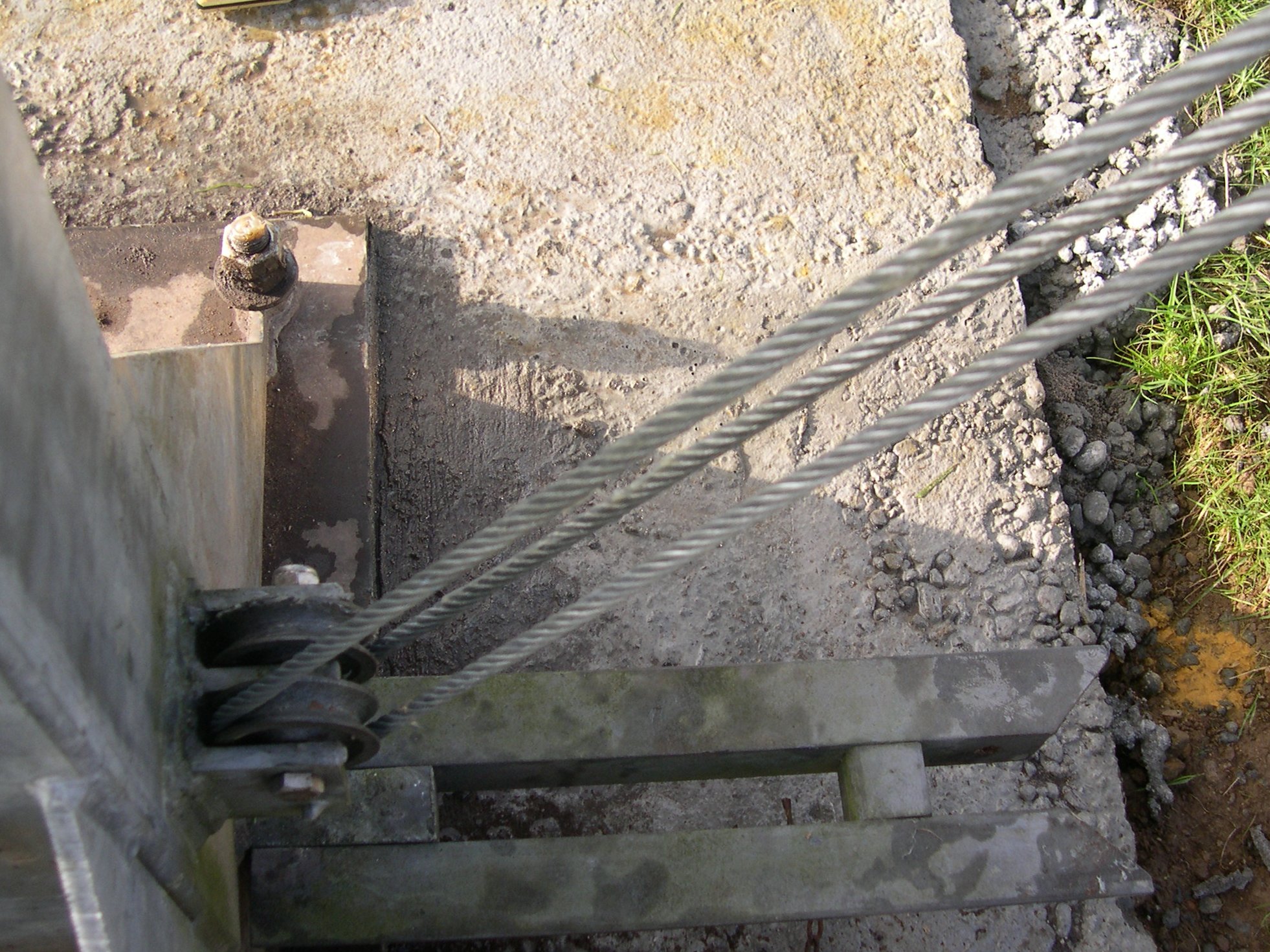 the uprated 8mm luffing wire runs easily through all the pulleys