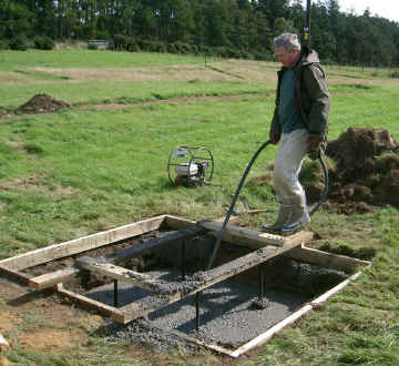 Andy GM0UDL (red overalls) supervising the pouring of the concrete into the