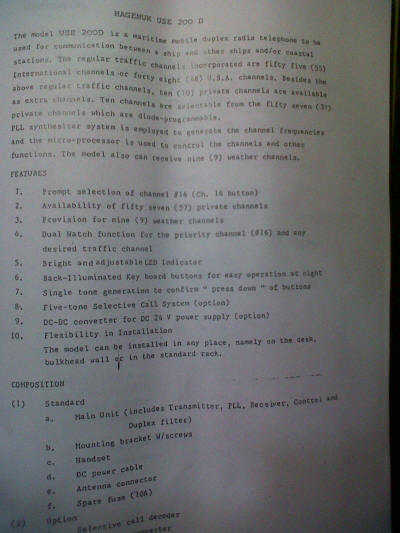 HAGENUK USE200 MARINE VHF RADIOTELEPHONE