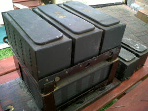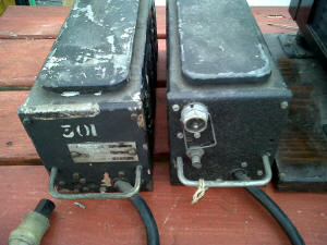 PTC102 2 complete Set 1 (Circa 1948) mounted on wooden plinth complete with vehicle mounting plates and control box donated to museum by John G3TFC (Baginton Electronics). This set is said to have been rescued from a skip outside Romsley Wireless Depot on the Clent Hills many years ago. It is said that it was a base station used at a local Worcestershire police station. It is AM and crystalled on the old 96 MHz Police RT band Set 2 was donated by Eddie Boyd M5PYE (G8CRN) who rescued it (and also a box of spare chassis). Pye