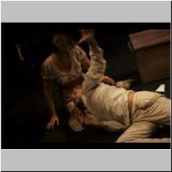 Tamás lázadása lassanként sötét szélsőségekbe csap át. Már nemcsak a társadalmi, hanem magának az életnek a keretei is kevésnek bizonyulnak a fennkölt kiteljesedéshez. A mindent kitöltő szférákat a halál birodalmában véli sejteni. Egy nem túl kidolgozott öngyilkossági kísérletet követ el Tamás Mihállyal, de nem a halál, az enyészet, a megsemmisülés, hanem a meghalás aktusa motiválja őket. Egy színházszerű, mindent megremegtető előadás. Mihályt továbbá még az áldozat szerep vonzza, e szerepben való játékos tetszelgése egy bizonyos kellemes melankóliaszerű érzéssel tölti el.