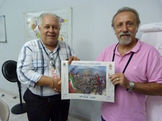 HP1RIS RICARDO SCHWARZ RECIBE DE MANOS DE HP1RN SERGIO CURINA EL DIPLOA DE LA ACTIVIDAD CARABINIERI ON THE AIR, ORIGINADA EN ITALIA.