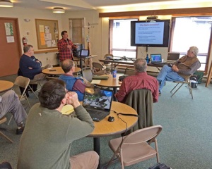 Mike Coulombe KB1UTD demonstrated the valuable and fun NBEMS system including FLdigi and FLmsg. Steve Hansen gave a presentation on Winmor/Winlink and other features of the RMS Express program, including how to send and receive emails over the amateur radio frequencies. Mark Albee N1MEA talked about the value of linking wireless routers together in an amateur radio MESH network, and showed a YouTube video on the topic. Phil N1EP, gave a presentation on the micro-miniature Raspberry Pi and its uses for the home and amateur radio applications.