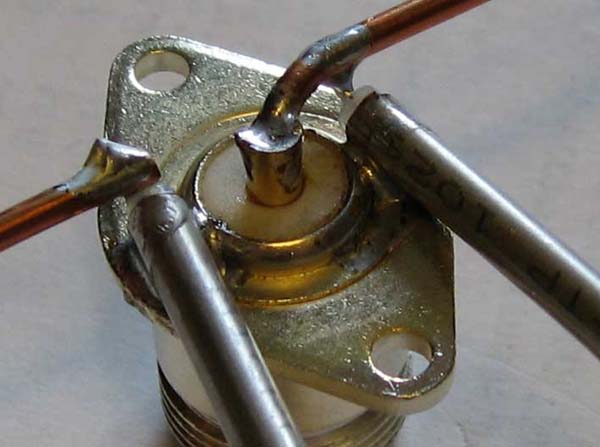 e intorno alle estremità del dipolo e saldatura come mostrato in
