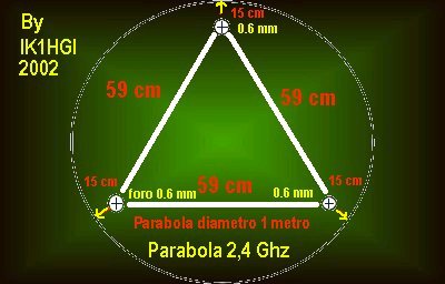 IL rapporto la misurare fra al centro della parabola, al centro dei cerchietti, vedi disegno, fattore di FUOCO la lunghezza e pari di 46,3 cm esatti.
