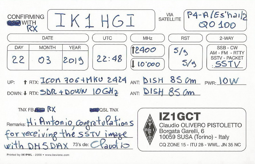 Parabola 80 Offset 10W SSB / CW) (DATV a banda larga da 10W