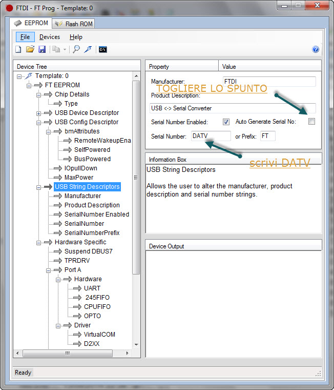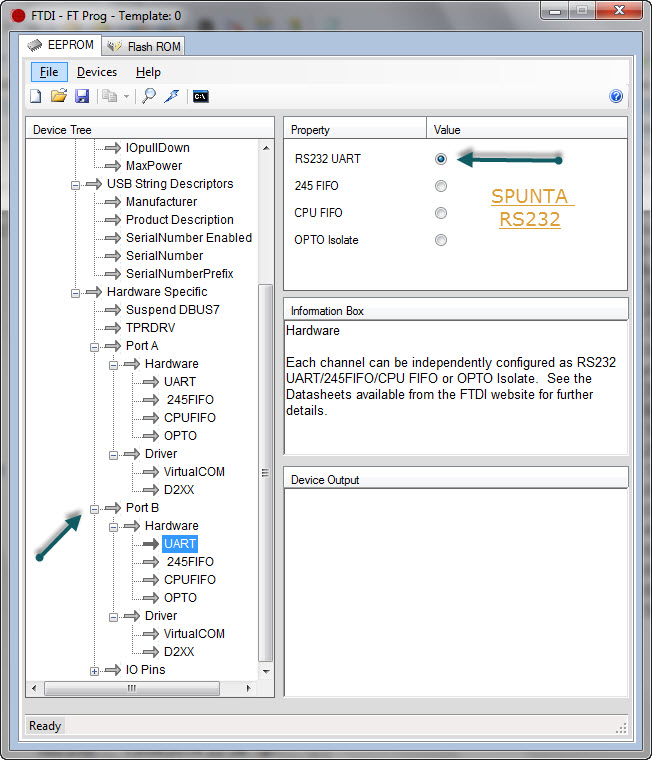 USB FT2232H La prima cosa da poter fare la configurazione del FT232H viene eseguito, non ci saranno le impostazioni memorizzate, in modo impostazioni predefinite sono indicate. Queste