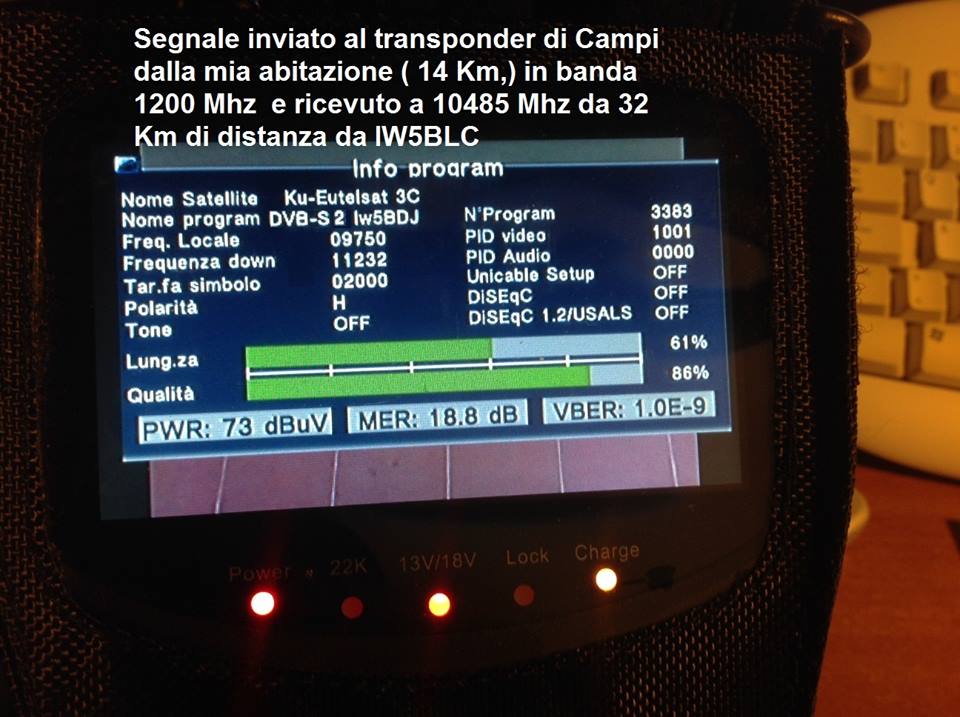 migliorare le prestazioni dei nostri trasmettitori DVB-S. Abbiamo tolto il Pc dal sistema e siamo passati dall' Mpeg2 all' Mpeg4 HD detto anche H264 Alta Risoluzione, nello stesso tempo abbiamo diminuito il Bit rate da 4000 a 2000 con un Fec 1/2 così da ottenere una banda di appena 2,7 Mhz. contro i 5,7 del precedente sistema con migliore qualità dell' immagine.