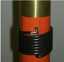 Finitura dell' EH di IK5XCT Una volta che l'antenna è terminata e tarata, con il nastro isolante fermare tutte le bobine ed i punti mobili. Occorre però proteggerla ulteriolmente da acqua oppure da urti di trasporto che potrebbero, accidentalmente spostare le tarature effettuate. Considerando che il diametro massimo esterno compreso i fili è di 58/59 mm ( i condensatori sono all'interno di questo ingombro) potremo pensare di infilarla dentro la taglia superiore dei tubi da acqua che è esterno 63 ed interno 60 ca (tubo bianco). Una volta che l'antenna è stata rivestita di nastro isolante, entra perfettamente dentro questo tubo, che dovremo però chiudere da una parte.