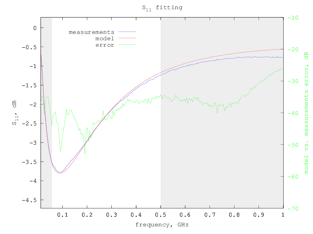 Using the extraction method previously described, considering only the S-parameters from 50 MHz to 500 MHz, the following small-signal model parameters are determined: