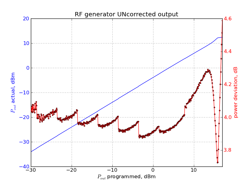 After SW correction the maximum deviation is about ±0.06 dB; cannot be much better than that since the 8657B output level resolution is 0.1 dB;.