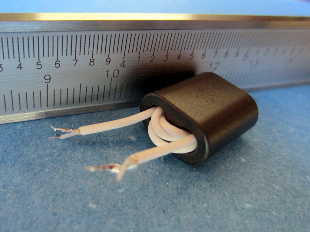 While not needed for low-frequency work, the inverting transformers bandwidth can be improved by using a real 50 Ω transmission line wound on the ferrite core; as saw before, using a line with a higher impedance causes a dip in the response around the frequency where the line length is ¼ wavelength long.