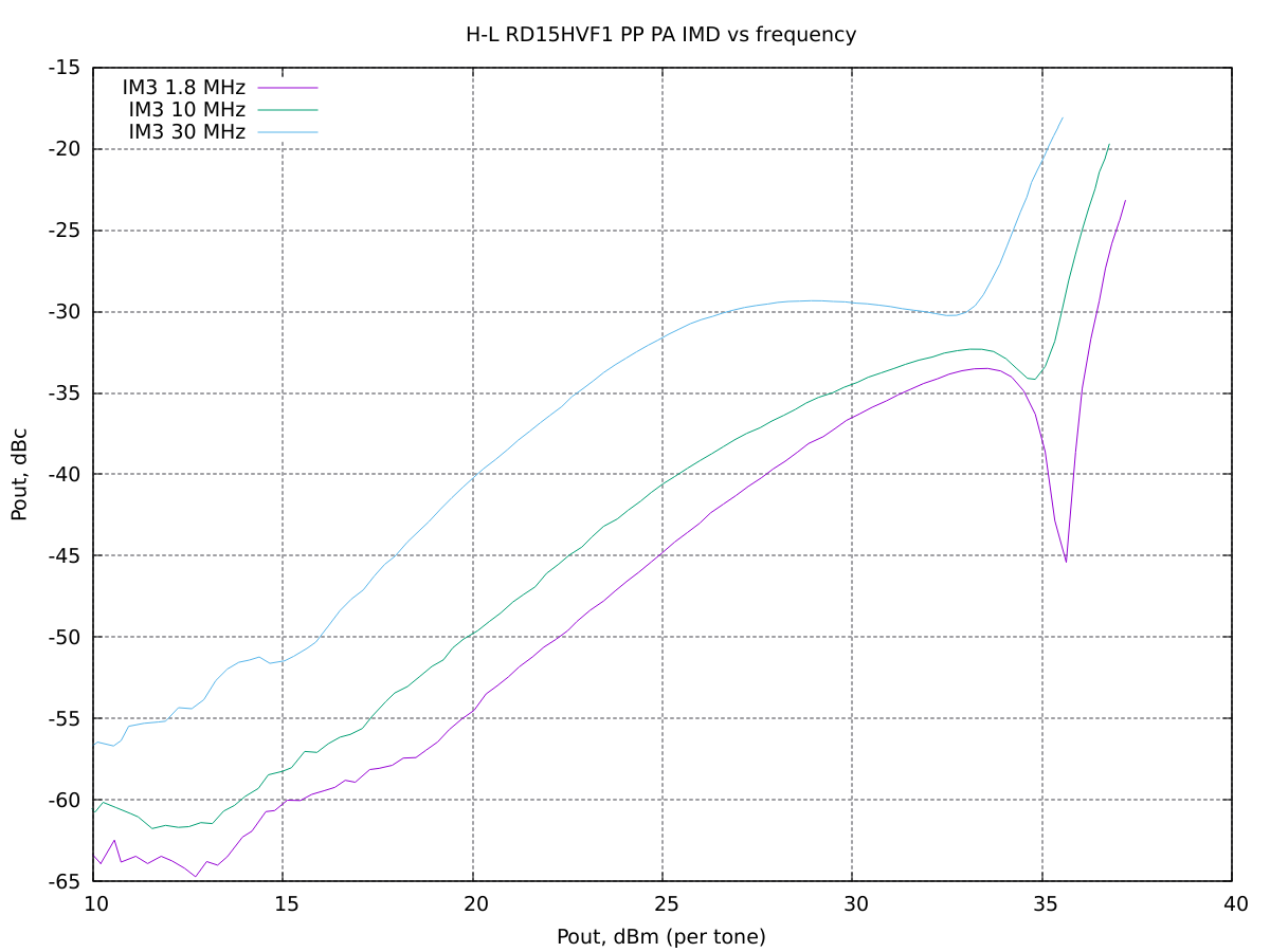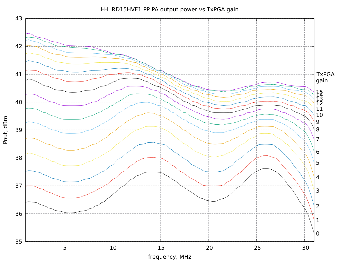 Measurements on a QRP power amplifier using a push-pull of RD15HVF1.