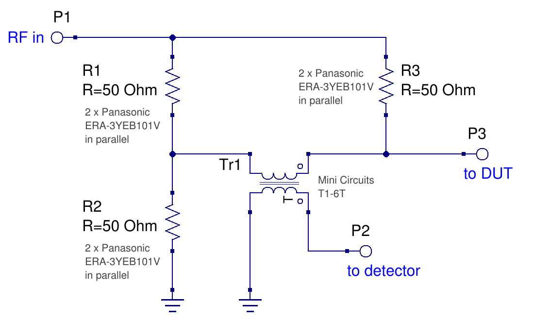 An important parameter of a bridge, especially when used for impedance measurements, is its directivity. Ideally, the detector port output should be related only to the reflected power from the DUT, while in practice also a (small) part of its output is due to coupling with the input (source) port.