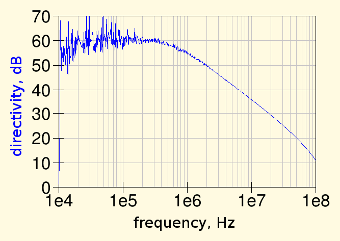 For this bridge the measured directivity is very good over the entire HF range (and can be improved at the higher end, see below):
