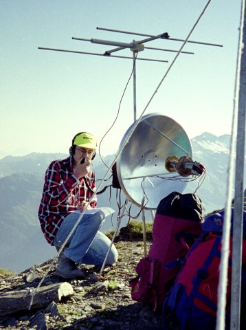 I'm also active on the 1296 and 5760 MHz microwave bands, but unfortunately the time available for this activity has decreased much lately. Anyway my brother Nicola, IN3LBQ, which shares with me the interest in ham radio, keeps proposing new mountaintops here in north Italy for the contest weekends; here is a picture of him on the Hühnerspiel (Amthorspitze) (2750 m a.s.l.), near the Austrian border, one of the many mountains visited during our endless search for a better /P location.