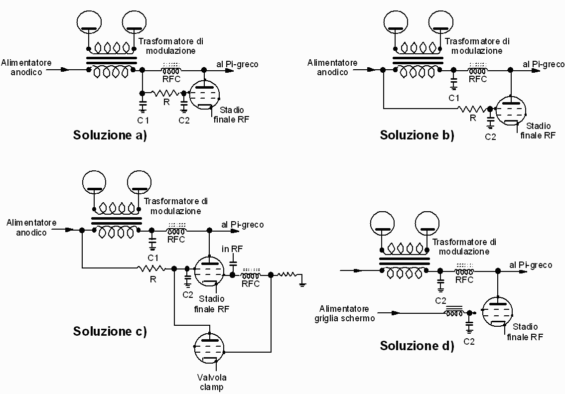 Tale soluzione è quella normalmente adottata nei vecchi trasmettitori AM, in quanto permette di