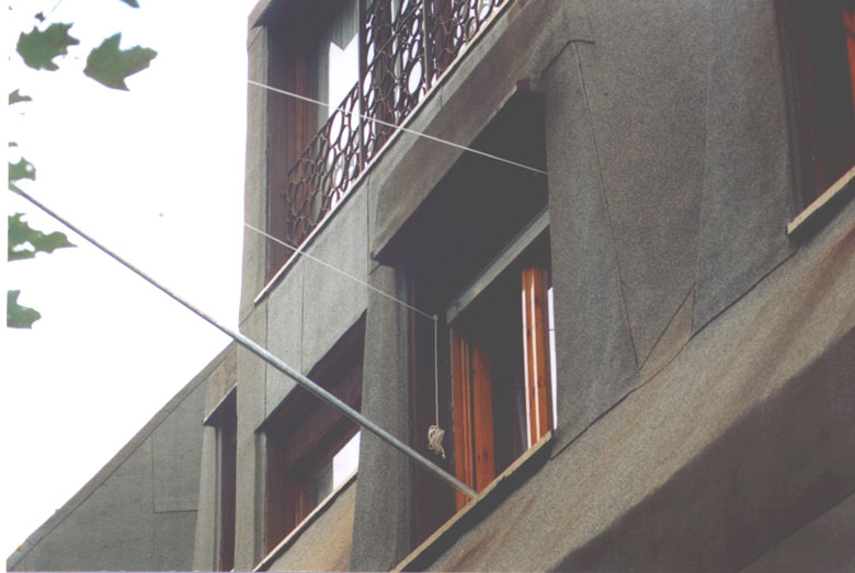 So, to bring the mast back in the apartment, I simply grasp it and take it inside. The nylon rope is not an obstacle for closing the windows shutters, so it can remain there until the antenna is disassembled. It is very easy to put the mast in place, as the nylon rope, running through the mast hole, makes it self-centering.