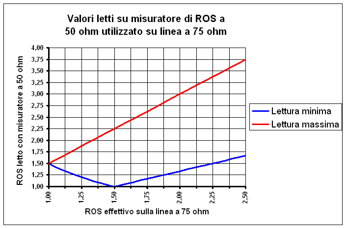 1. Variazione della Z vista dal trasmettitore: quando il ROS sia > 1, la Z che la linea presenta al trasmettitore risulta essere diversa da [R= 50 X= 0], e varia in funzione della lunghezza elettrica della linea stessa (misurata cioè in termini di lunghezze d'onda). Ciò può avere varie conseguenze, principalmente quella descritta al punto 4. Si anticipa come esistano dei casi particolari in cui, in presenza di ROS> 1, la Z che si presenta al trasmettitore vale comunque [R= 50 X= 0] (ad es. quando una linea che abbia impedenza caratteristica diversa da 50 ohm e lunga multipli di mezze lunghezze d'onda sia caricata su di un'antenna che abbia Z pari a [R= 50 X= 0], vedi par. 10).