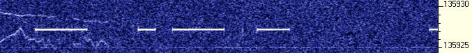 Here are the T and the W of the call sign, received with Spectran, together with what looks like a Loran line, at 135925 Hz. The S/N ratio was a bit more than 20 dB.
