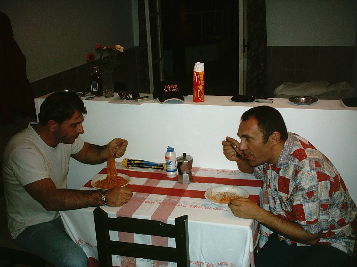 The first "Pastasciutta" at 1.30 a.m. after arrival on Crete