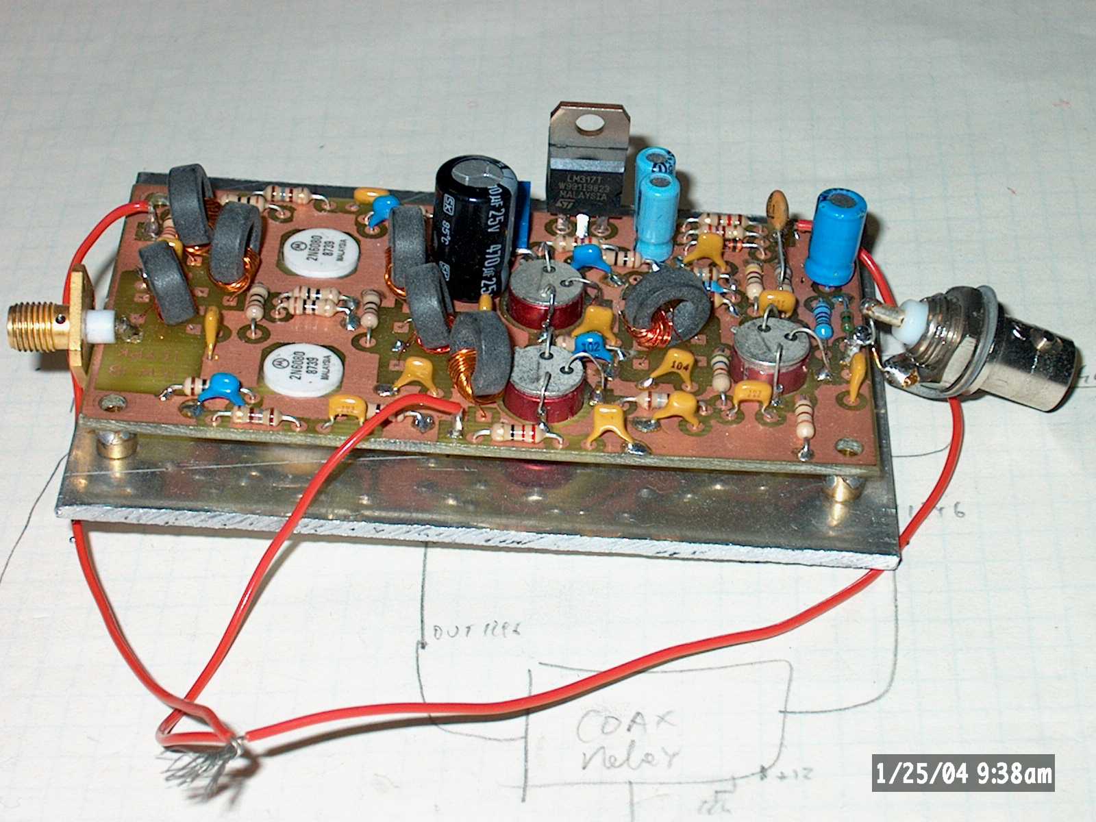 Questo amplificatore, dovendo lavorare su un'impedenza di 50 Ω, è stato realizzato in due stadi: il primo che lavora in classe A mentre il secondo lavora in classe AB1 con un circuito single-ended per contenerne al massimo il consumo.