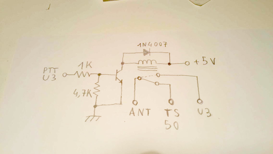 ______________________________________________________________ Utilizzo un trasmettitore Ultimate 3-S, ero in difficoltą non avevo la possibilitą di ricevere potevo solo trasmettere, con questo modo ho la codifica del segnale, ho realizzato questo sistema di commutazione tra la mia radio Kenwood TS-50 e U3, il sistema Ultimate 3 trasmette sulla banda 475,700 khz e radio sulla parte di ricezione 474.200 khz ho realizzato questo sistema cosi potro ricevere senza distaccare la antenna del TX U3 Questo circuito, automaticamente, ci permetterą di passare le antenna, come si vede sullo schema configurato U3, lo schema la commutazione collegato una resistenza da 1k sul BC 547 Q1 del Key, ci permette di commutare il relč passando da RX-TX oltre al sistema di posso usare anche multi antenne 10-80-160 metri, per usare il nostro beacon WSPR con pił antenne, ho utilizzato per mio scopo una antenna dei 630 metri, U3 in modo durante la trasmissione arriva sulla antenna, finito il segnale di modulazione wspr, passa in RX cosi riceve i segnale altri OM sonno vedi la foto del risultato.