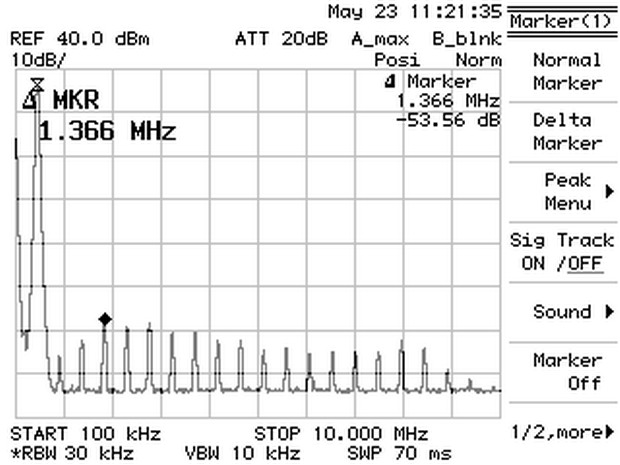 Altro Analizzatore ho chiesto altro amico Ingegnere IK1IZA se poteva darmi per certezza se avevo armoniche sulla banda tra 472Khz a 479Khz difatti la prima cosa che mi disse qui non vedo nessun segnale di armoniche si e messo sotto con il suo analizzatore spettro e ha analizzato tutto e mi ha garantito che ho fatto un bel lavoro senza portare disturbi sulla banda 473/479 Khz.