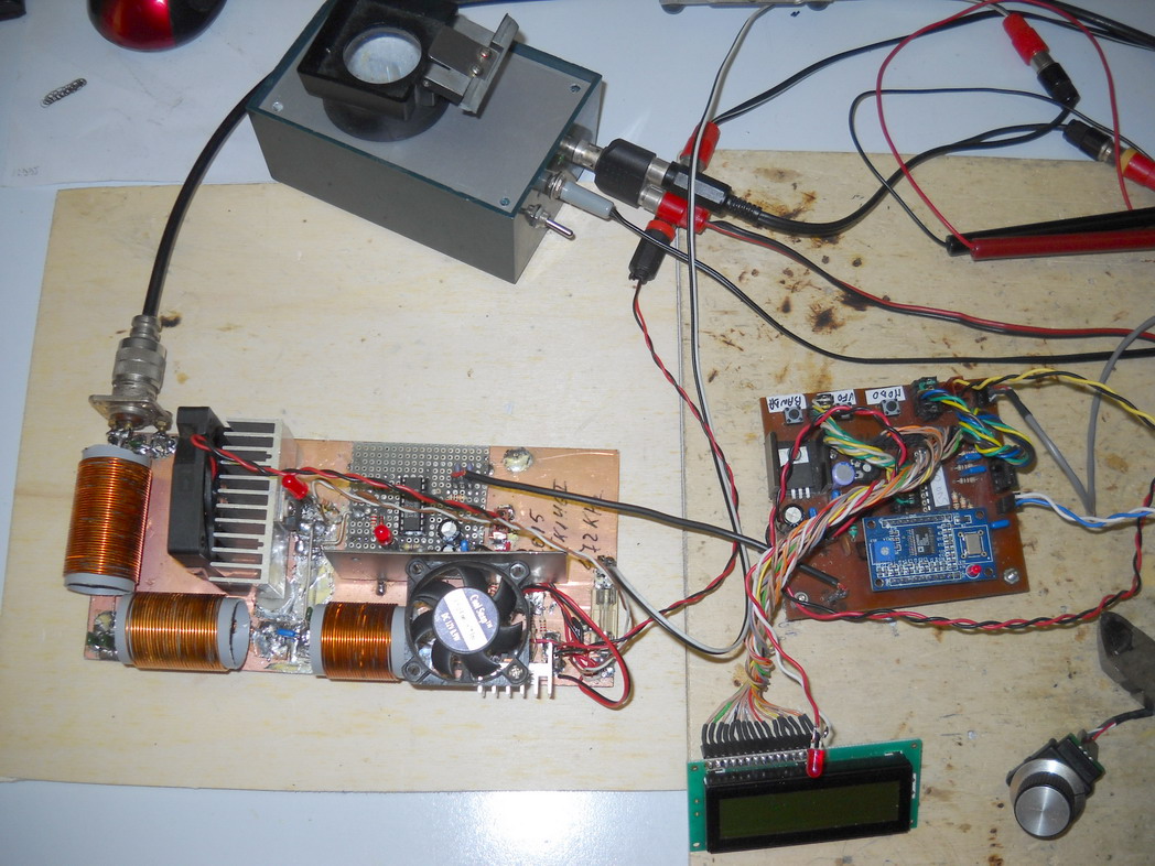 poi si usare una tensione per aumentare la potenza, fino al un limite di da 1 watt, ho fatto dei sperimenti di test sul trasmettitore avendo un alimentatore di buon amperaggio, variando la tensione sono arrivato fra 1 Watt, utilizzando la tensione del circuito della parte oscillatore utilizza solo la tensione di 12+ volt, tensione da utilizzare per il finali IRF510 fra 15-19+ volt, usare un alimentatore che abbia almeno 10Am.