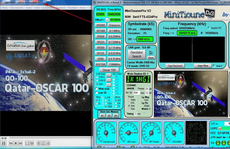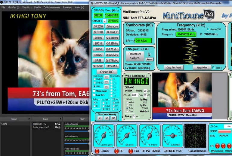 Grazie a Tony G0AXZ ha dato la possibilità di ricevere primo segnale ascolto della ricezione DVB-S2 dal satellite QO100 Primo ascolto modo SWL nel sistema DATV-S sul QO100 con il computer uno scambio di parole Chat, il mio primo sistema DVB_S2_GUI ___________________________________________________________________________________________________ CT1BYM Grande video ricevuto della mia prima ricezione del Satellite QO100