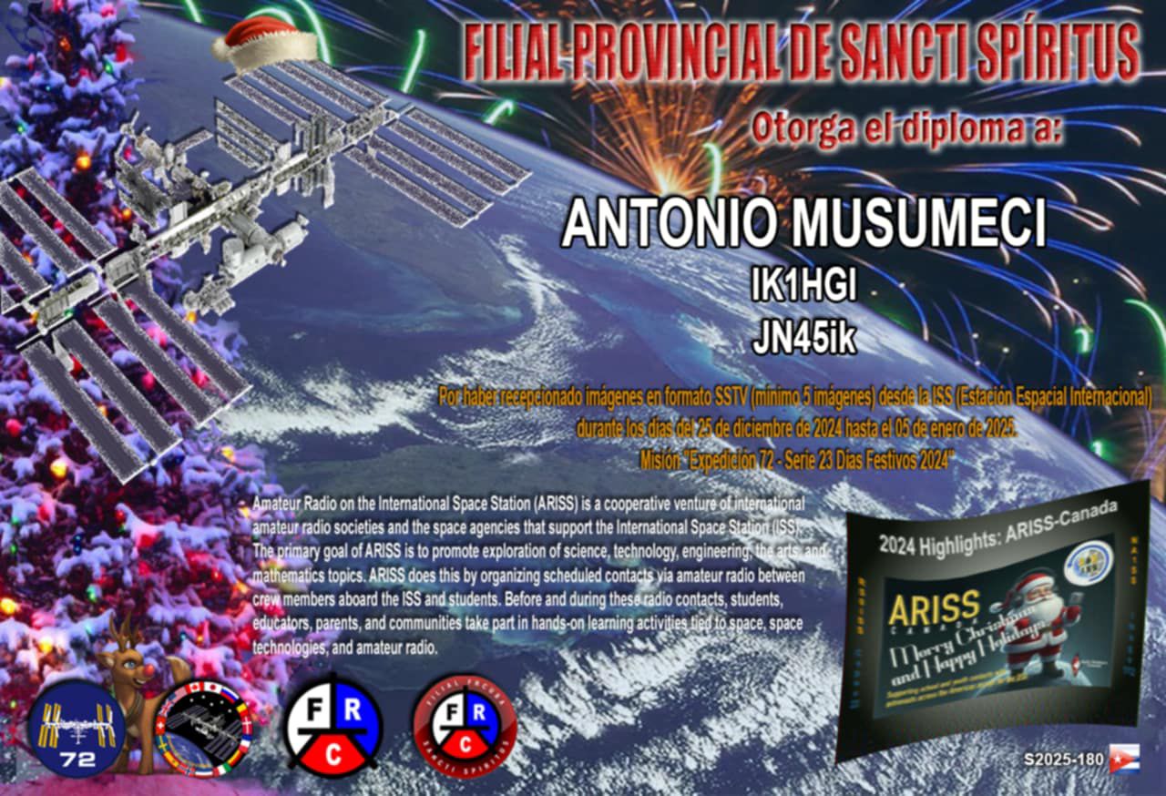 Ham Satellite PR SSTV on ISS 2024 Puorto Rigo SSTV Diploma 7th Edition "Expedition 72 - Series 22 Fortieth Anniversary" mission. 25 Dic to 5 Gen , 2024/2025