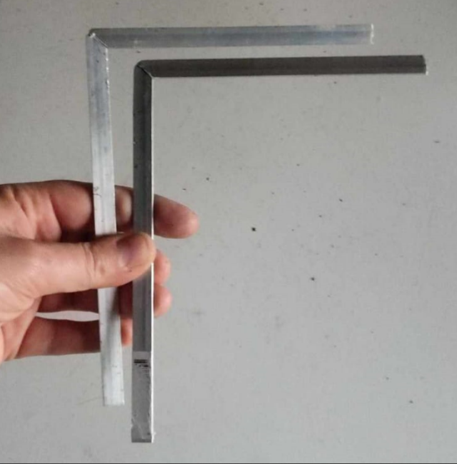 Qui solo due pezzi di alluminio 10x2 calcolare dove avviene fatto il taglio 120 gradi |