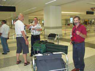 Special bag for the transport of antennas and Dunestar filters Alfeo I1HJT, Claudio I1NVU e Tony IK1QBT arrives in Milano Malpensa  Team  wait for practical customs Tony IK1QBT ready for fly Beirut