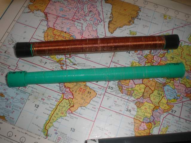 Per realizzare la bobina, ho avvolto circa 6 metri di filo di rame smaltato da 1,5 mm su un tubo da acqua in pvc del diametro di 2 cm lungo circa 24 cm, nel quale è stata ridotta al tornio la sezione di circa 1,5 mm per la lunghezza di 20 cm dove alloggia il filo.
