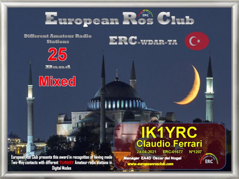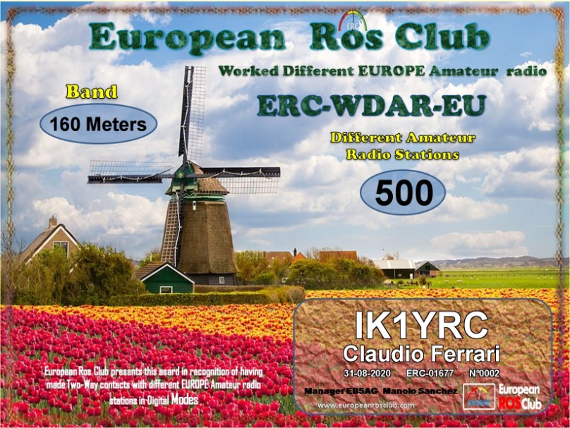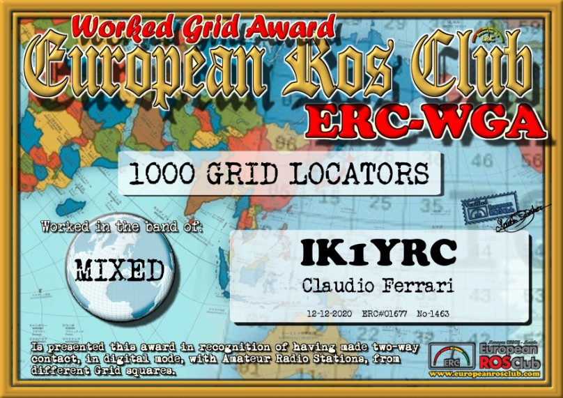 AWARD IK1YRC > AWARD ERC EUROPEAN ROS CLUB