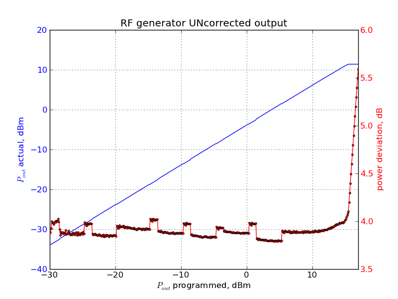 After SW correction the maximum deviation is about ±0.06 dB; cannot be much better than that since the 8657B output level resolution is 0.1 dB;.