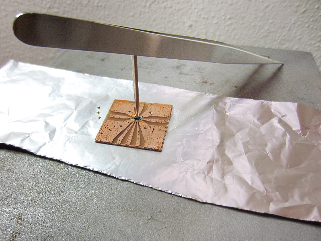 Soldering was not too easy: I used solder paste and at the first try I put too much in the center and the device remained suspended above a big blob of solder connected to the center pad.