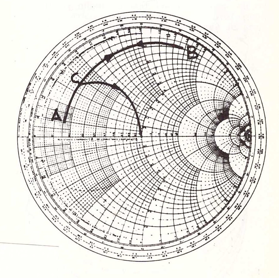 Seguiamo allora la circonferenza a g (conduttanza) costante sulla carta Y, che trova al di sotto della carta Z, girando in senso orario.