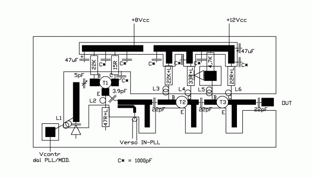un'area isolata che compare tra la resistenza da 22k ed L3 (polarizzazione di Q2).
