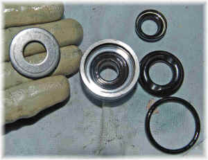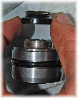 Nell'ordine estrarre: il tampone finecorsa interno (quella specie di ciambella nera) e la rondella spessa;