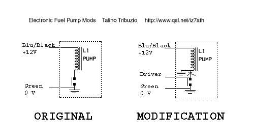 3) lasciare il cavo verde (massa) della pompa scollegato e collegare il driver a