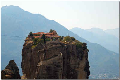 Da lontano sbucano maestose le meteore, strane formazioni rocciose sulle quali