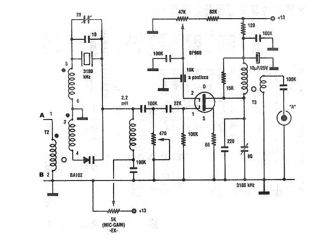 this design can be applied to any transceiver,having just a couple of resonators | questo progetto puo' essere adoperato per qualsiasi transceiver ,avendo solo un paio di circuiti accordati |