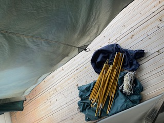 雨でもタープが張ってあると撤収が楽、、で中古のタープをポチ