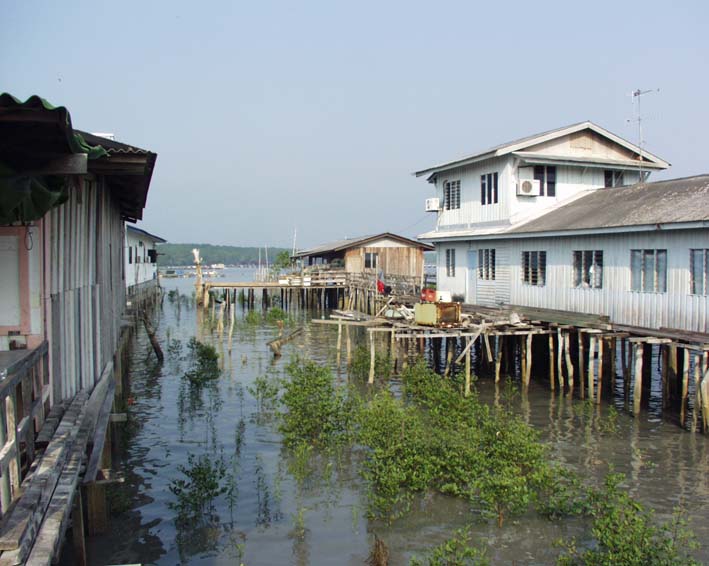 日本であればお土産屋さんの一軒くらいはあってしかるべきなのですが、なーんにもありません。1メートルくらいの高さの台の上に貼り付けたプレートと国旗掲揚台があるだけでした。今回は猿君が出迎えてくれましたので記念に写真を取って来ました。ここから少し北に上がると、海の上の町、ククップがあります。