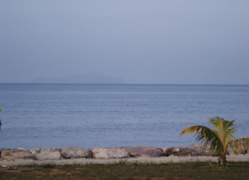 高床式の典型的なマレー式住宅も多く見られます。この道の制限速度は90Kmですが、みんな100Km超え位の猛スピードで飛ばしています。こっちは景色を楽しみながらですので80Km、仕方ないので車が追いついて来たら、止まって行かせてやりました。 |