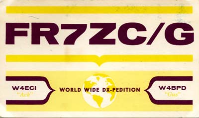 彼のDXpeditionでGusの運用スタイルの写真を見たのはこれが初めてです。 このようなテラスで運用したのですね、上半身裸で暑そう! 右手で抱いているのはマダガスカル島にしか住んでいないと言われる ワオキツネザルと思われます。今は絶滅危惧種ですが、60年代には 沢山生息していて、ペットになっていたのかも知れませんね 私の記録ではGusがFR7ZC/Gを運用したのは1963年4月18日から21日です。 . |