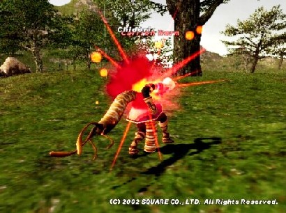 最初、「戦士」という設定で始めて、これはこれで刃物が手に出来た時は、嬉しかったですが、格闘パターンがリニアでいまいちでした。そこで「白魔法の使える道士」に職業換えして、かような格闘を行うようになりました。 |