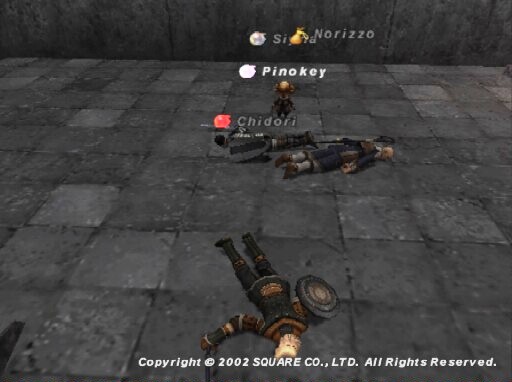 この頃、砂丘で組んだプレーヤと再会することが多かったです。 ログインするたびに、名前だけみかけるshikiさん、hazelさん、あと下の写真のNorizzoさんです。 Norizzoさんは以前会ったときはケープを被っていてわかりませんでしたが、 はげおやじでした。このゲームを始めるときは、慎重に無難なキャラクターを選んだほうが良さそうです。