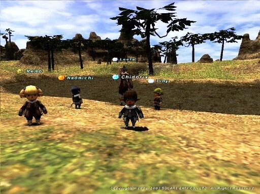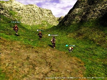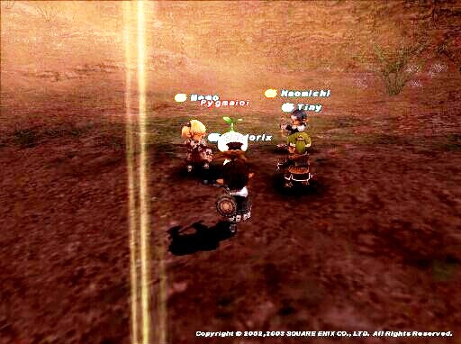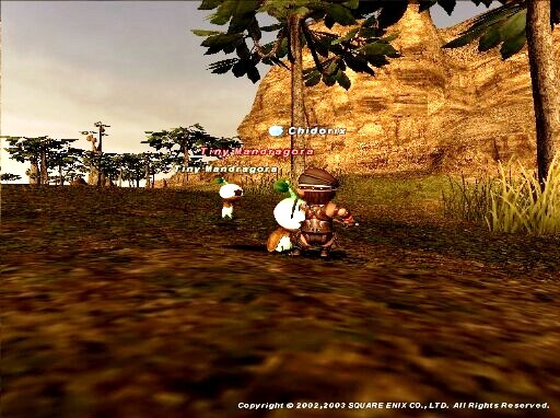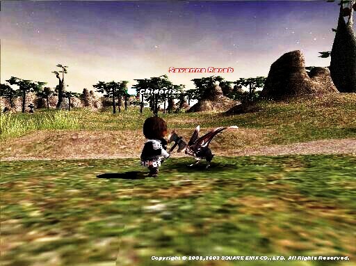 飛空艇でジュノ経由でサンドリアへ行き、ロンフォールを通り抜けて、ラティーヌ高原へ行きました。 ラテの入り口で狩っていたところ、以下の独人プレーヤのカルガに誘われて、二人でしばらく借りましたが、まったく日本語表示がわからないらしく、とんでもないのに手を出すので、けっこう苦労しました。